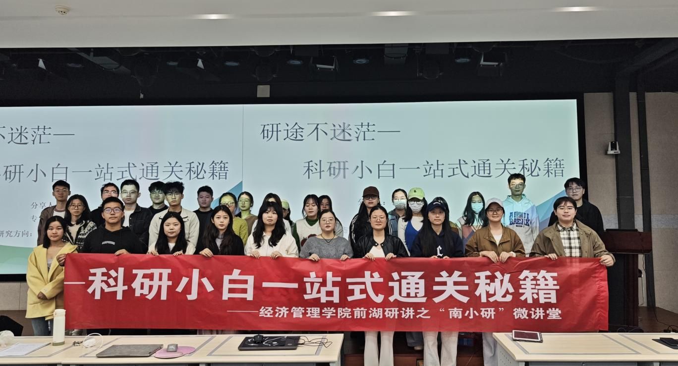 为助力科研新人快速入门学术研究,2025年11月16日下午,南昌大学第16届“前湖研讲”研究生学术文化节系列活动之“南小研”微讲堂(第218期)在智华经管楼B618顺利举办。本次活动由南昌大学党委研究生工作部、校研究生会联合主办,经济管理学院承办,特邀学院2025级理论经济学博士研究生刘伟芳担任主讲人,现场气氛热烈。讲座中,刘伟芳结合自身学术经历,从科研规划、学活平衡、入门路径、发展选择四个核心维度展开翔实讲解。她建议可将科研目标拆解为阶段性任务,...