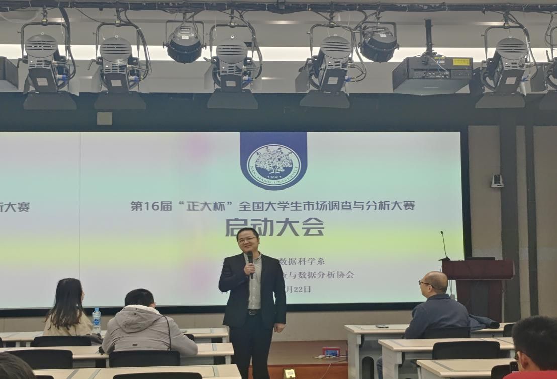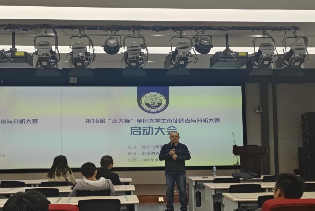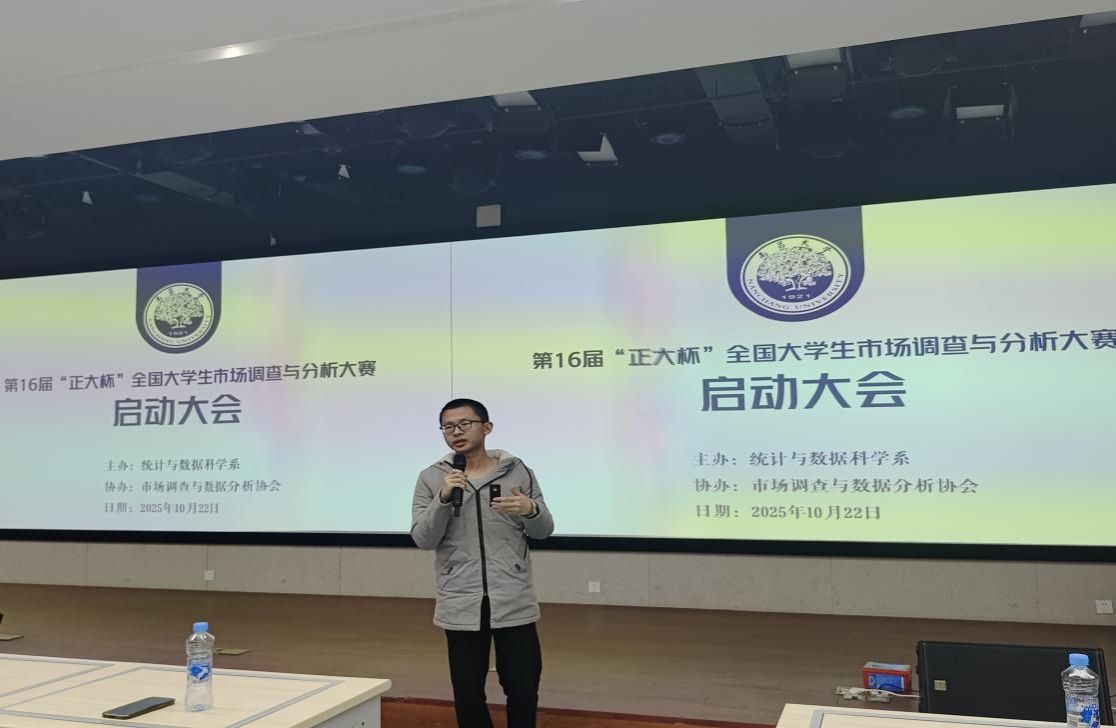 2025年10月22日,经济管理学院在智华经管楼B618举办第十六届“正大杯”全国大学生市场调查与分析大赛启动大会。本次大会旨在帮助学子明晰赛事内容与流程,由统计与数据科学系主办、市场调查与数据分析协会协办,吸引112名本科生与42名研究生参与。