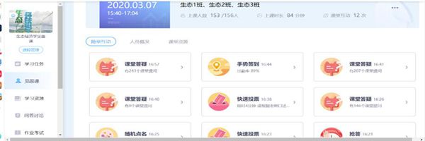 二是引导学生自主学习方面:线上教学环节提供丰富的教学素材比如提供给学生的在线学习视频中插入相关视频和弹题,在课后互动问答区设置讨论话题,引发学生对当前生态环境问题的学习和思考。直播见面课堂则真正实践了以学生为中心,切实引导学生自主学习、自发性思考的教学改革行动。老师在课前设计好讲授知识点,提前发布丰富多样的PPT、视频、网址链接等素材作为见面课的课前学习资料,在直播课堂则让学生针对当前与生态经济学有关的热点话题进行讨论。在互动环节,使用了投票、抢答、课堂答疑、头脑风暴、小组讨论等多种互动功能,充分调动了学生的积极性,很好地引导了学生自主学习与思考。